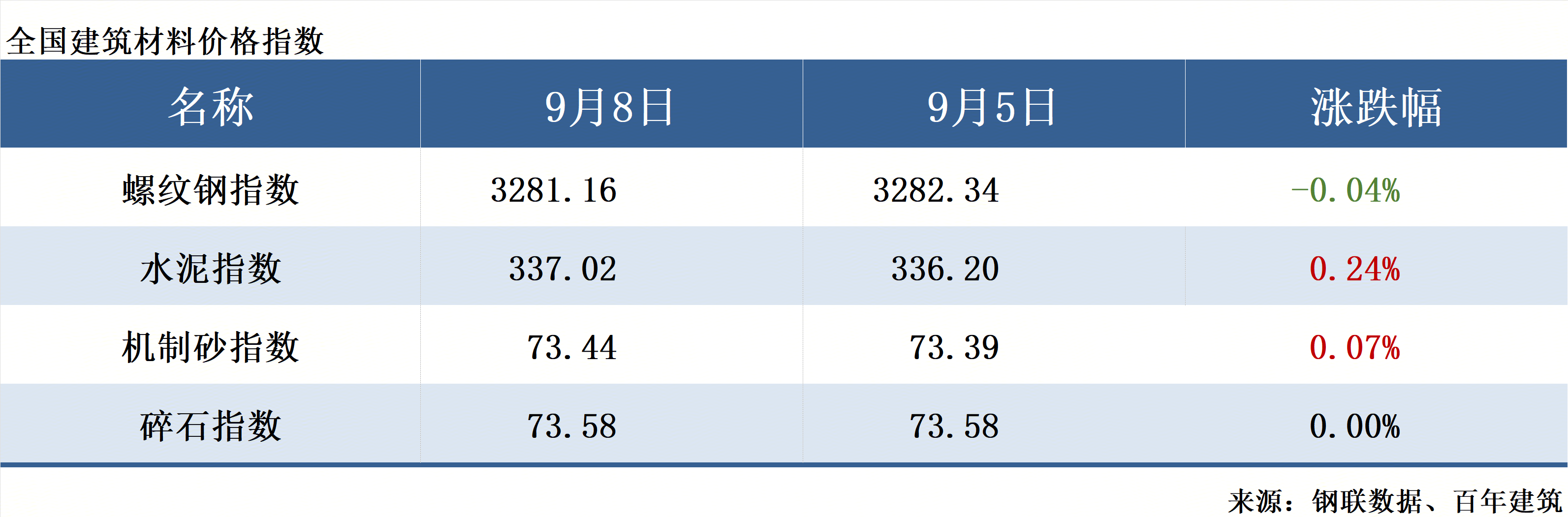 ◎9月8日全国砂石行情涨跌互现,天然砂涨价地区主要集中在河南,机制砂跌价地区主要集中在江苏。