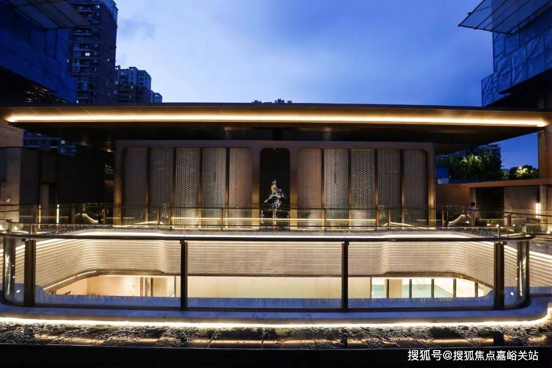 整体长约18米、进深约9.5米的下沉庭院——星池雅宴,将空间意境与社交属性的精准定义,引入“琉璃光院”的通透与灵性,将玻璃砖景墙与金属网水幕作为空间的核心元素,尽显海派雅奢风情。