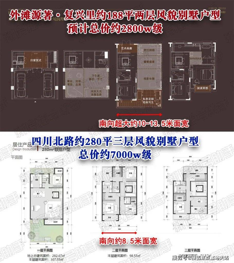 更以南向面宽约10-13.5米奢阔开间,呈现出大面宽、短进深的别墅户型,超越市面上约7000w级风貌别墅面宽。